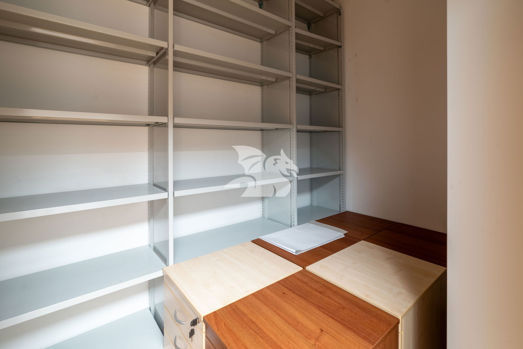 The office space has a net floor area of 120.00 m² and includes an entrance area suitable for a reception desk, two offices, a meeting room, and two archive rooms. The offices share access to a kitchenette and restroom facilities.