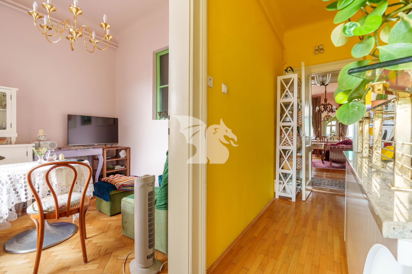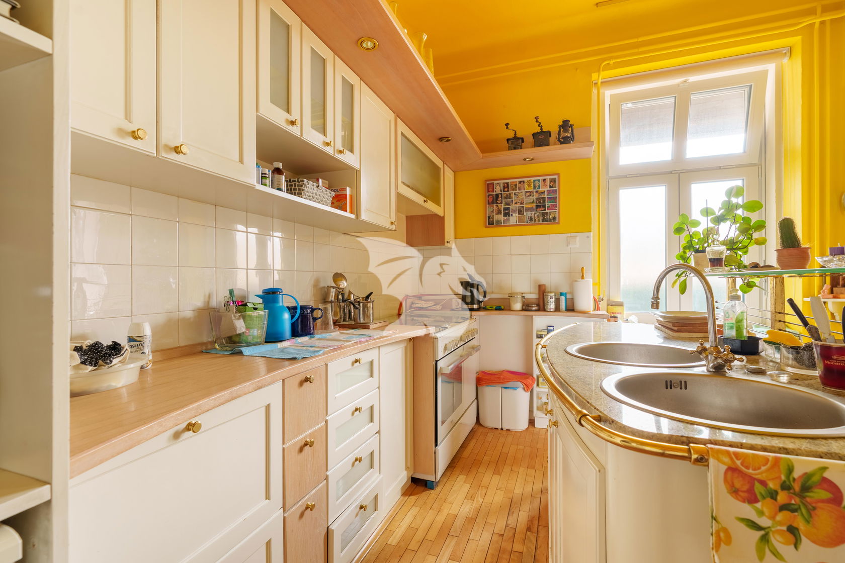 Thanks to the high ceilings and large windows, the apartment is very bright and airy. It is excellently maintained and is sold partially furnished or as agreed.