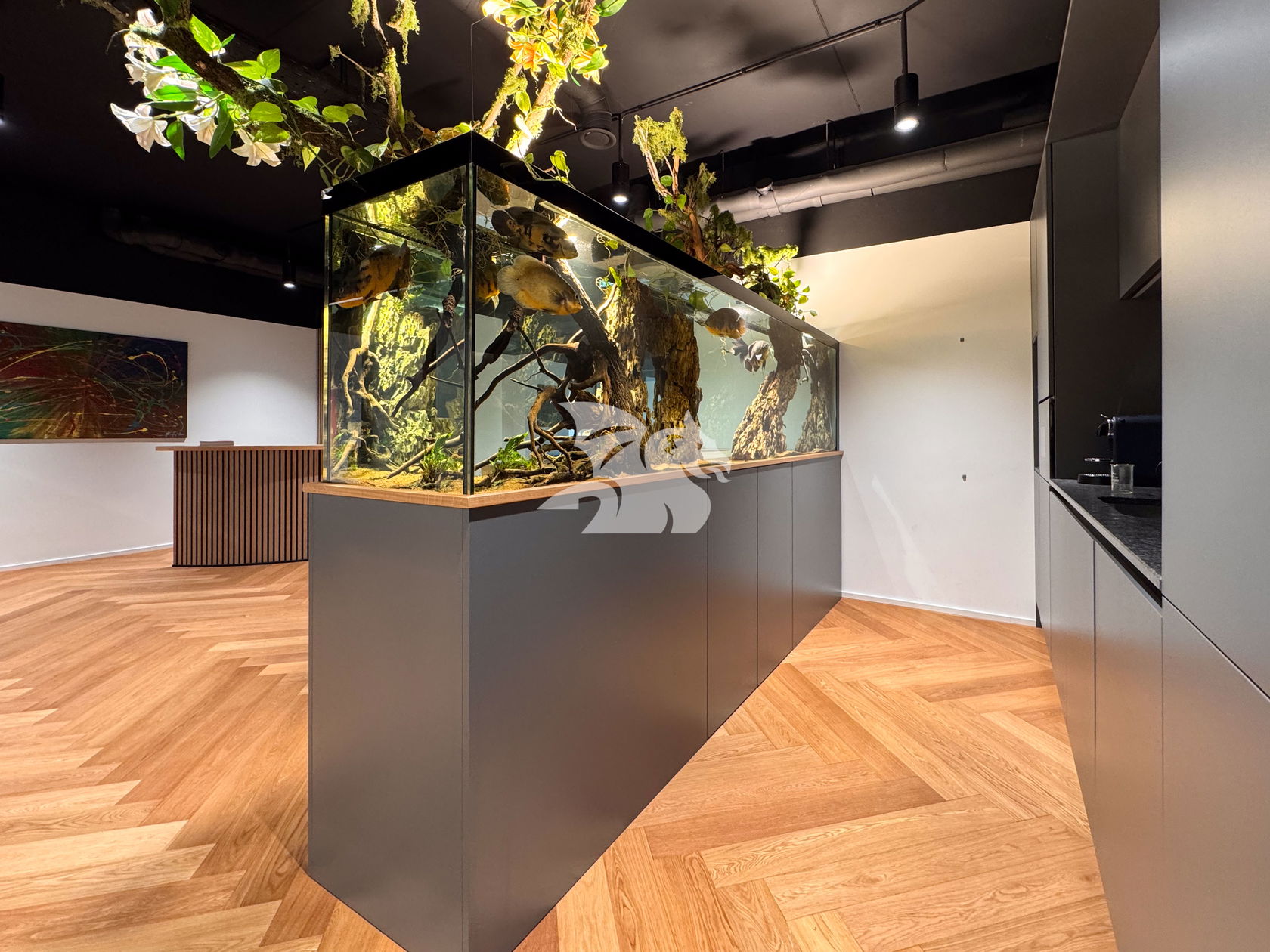 V pritličju stavbe, zasnovanem kot nakupovalna galerija, se nahajajo trgovina LIDL, frizerski salon, kavarna, restavracija, pilates studio in ORL ambulanta.