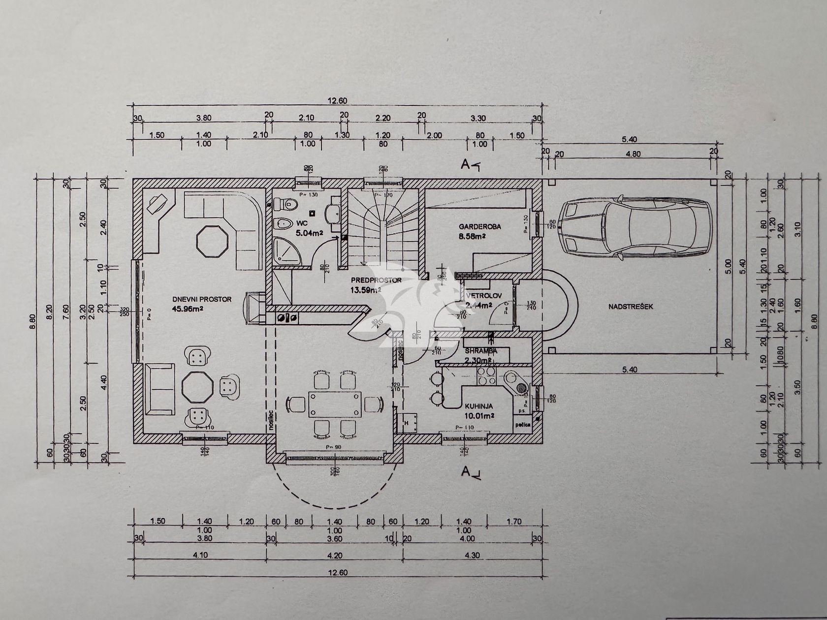 Hiša etažnosti K+P+1+M po podatkih GURS obsega 258,30 m² bruto površine (152,10 m² evidentiranih bivalnih površin), pri čemer je dejanska uporabna bivalna površina občutno večja.