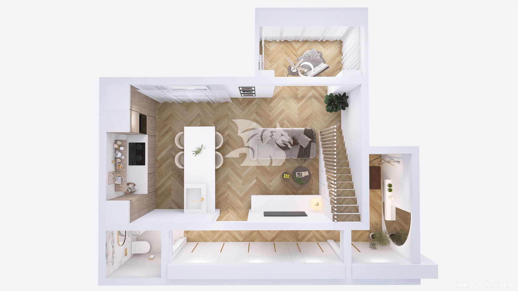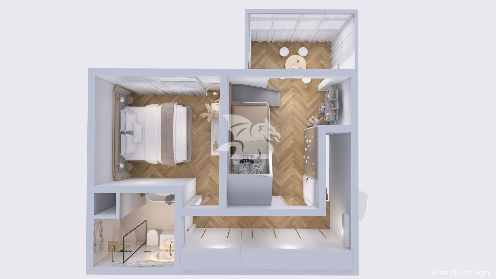 Fotografijam v oglasu so dodane tudi vizualizacije, ki ponujajo navdih in lažjo predstavo o potencialu stanovanja ter njegovi podobi po prenovi.